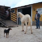 Ich habe ihn ans Halfter gewöhnt – so wirklich Vertrauen benötigt natürlich längere Zeit, doch ich wollte ihn wenigstens ein klein wenig soweit vorbereiten, dass er am Strick an den LKW geht, um ihn zu unserer Finca zu holen – und dies haben wir soeben gemacht.