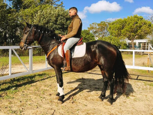 Seit 3 Jahren nicht unter dem Sattel, frischen wir gerade ihre Reiterfahrung auf.